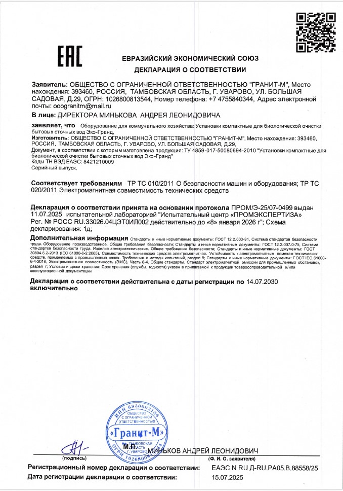 | Название | Объём переработки, м3/сут | Залповый сброс, л | Глубина залегания подводящей трубы, см | Тип сброса | Размеры, м | Вес, кг |